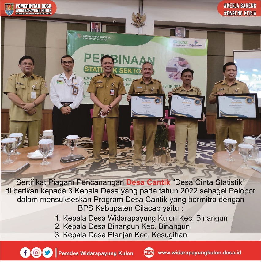Kepala Desa Widarapayung Kulon Menerima Sertifikat Piagam Pencanangan Desa Cantik
