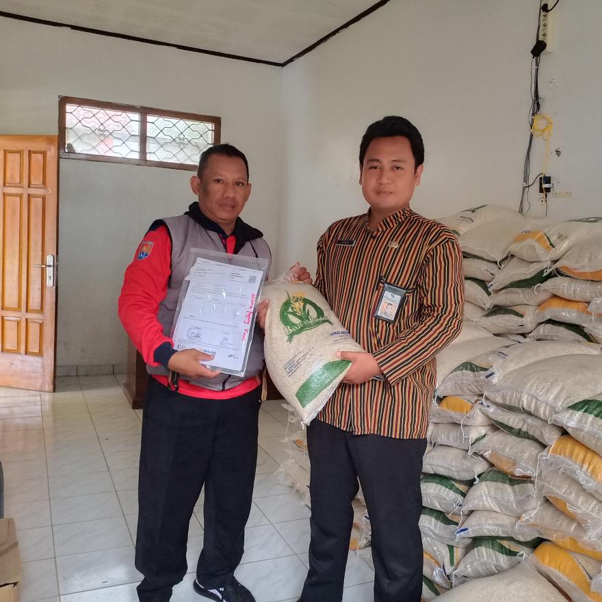 Sebagai perwakilan pihak dari Bulog Maos menyerahkan secara simbolis kepada Sekretaris Desa Widarapayung Kulon, Bapak Saikun, S,Kom sebagai wakil dari Pemerintah Desa Widarapayung Kulon untuk menerima droping beras tersebut.
